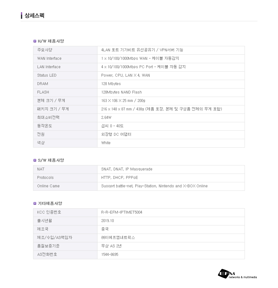 ipTIME 유선 공유기 T5004