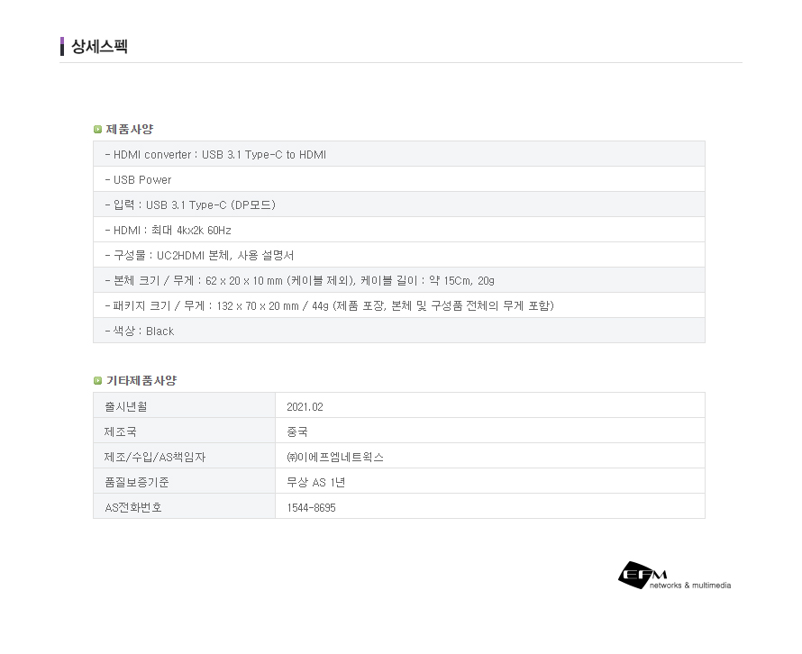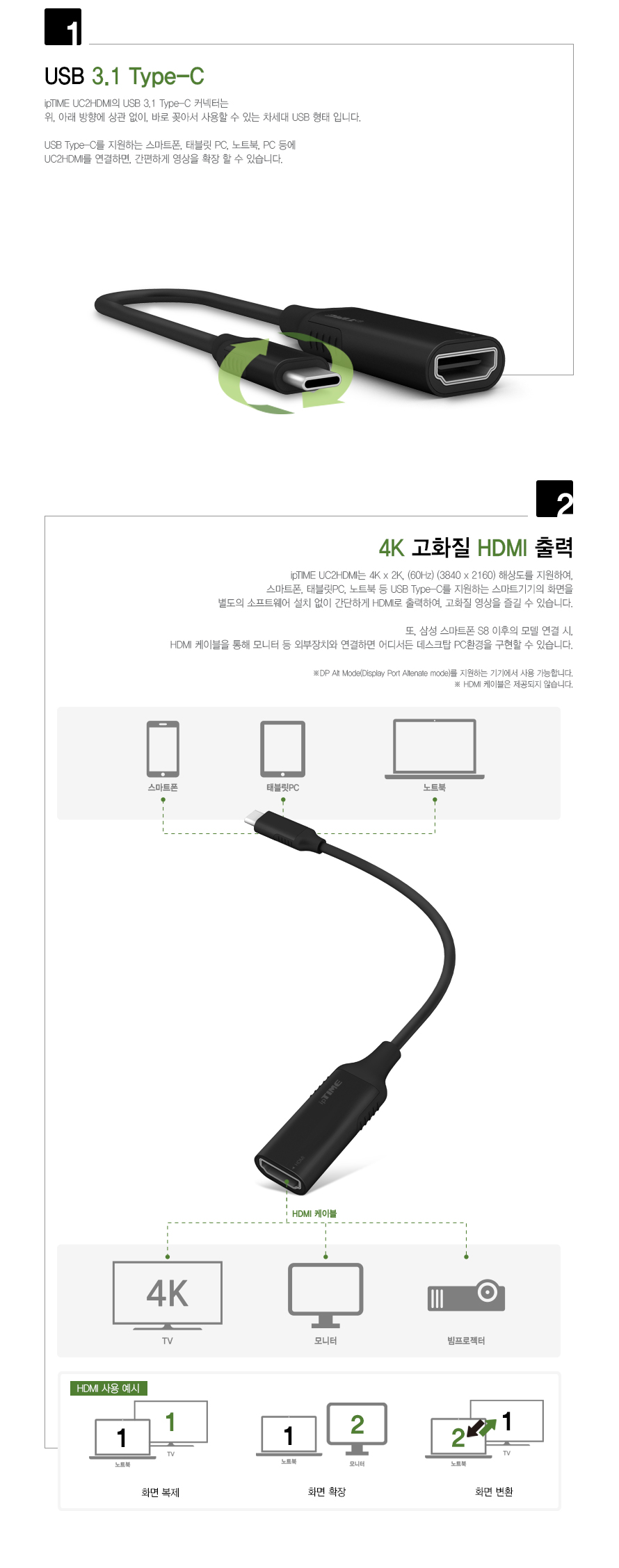 ipTIME USB 3.1 Type-C 커넥터 UC2HDMI