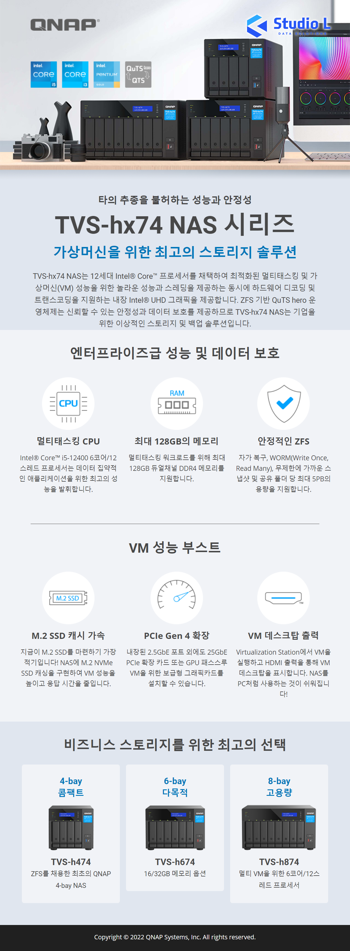 10/25GbE 연결을 위한 PCIe Gen 4 확장성, 가상화 애플리케이션을 위한 M.2 NVMe SSD 캐싱 및 다중 스레드 프로세서를 갖춘 매우 안정적인 ZFS 기반 스토리지