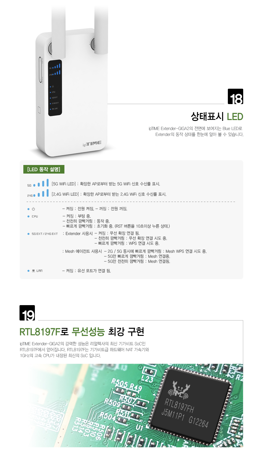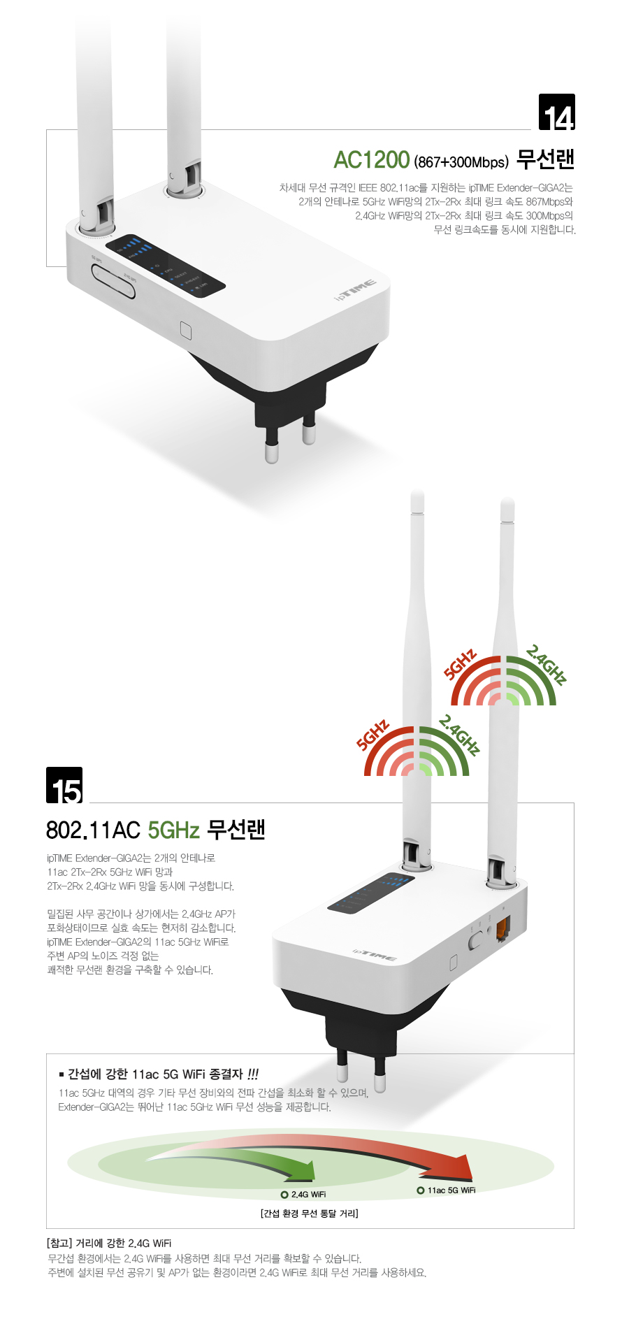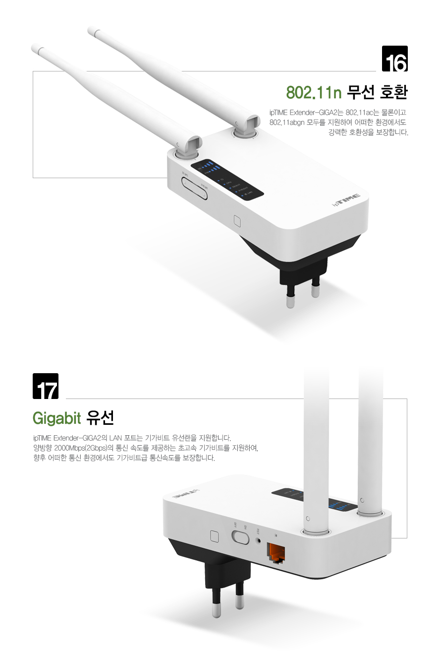 ipTIME 듀얼밴드 AC1200 무선 네트워크 확장기 Extender-GIGA2