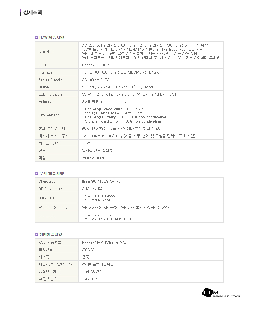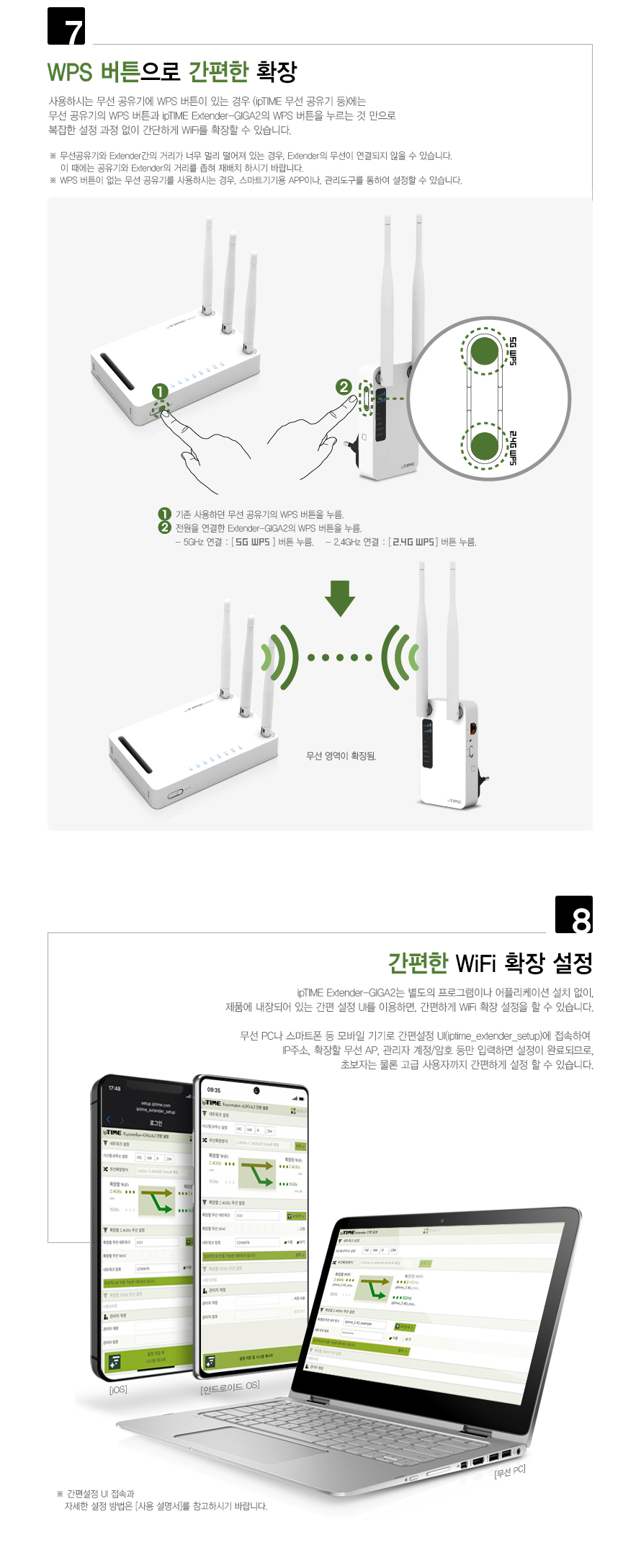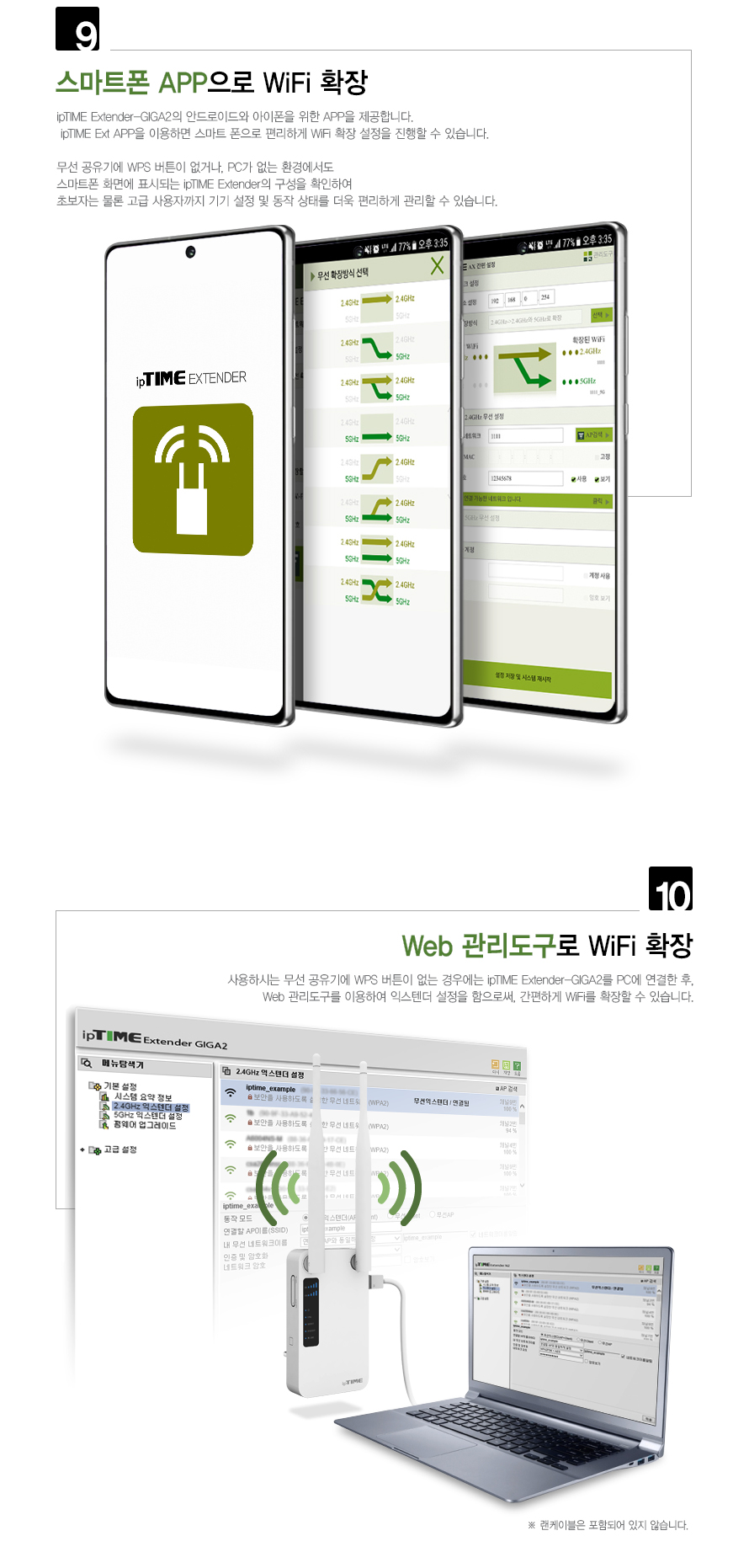 ipTIME 듀얼밴드 AC1200 무선 네트워크 확장기 Extender-GIGA2