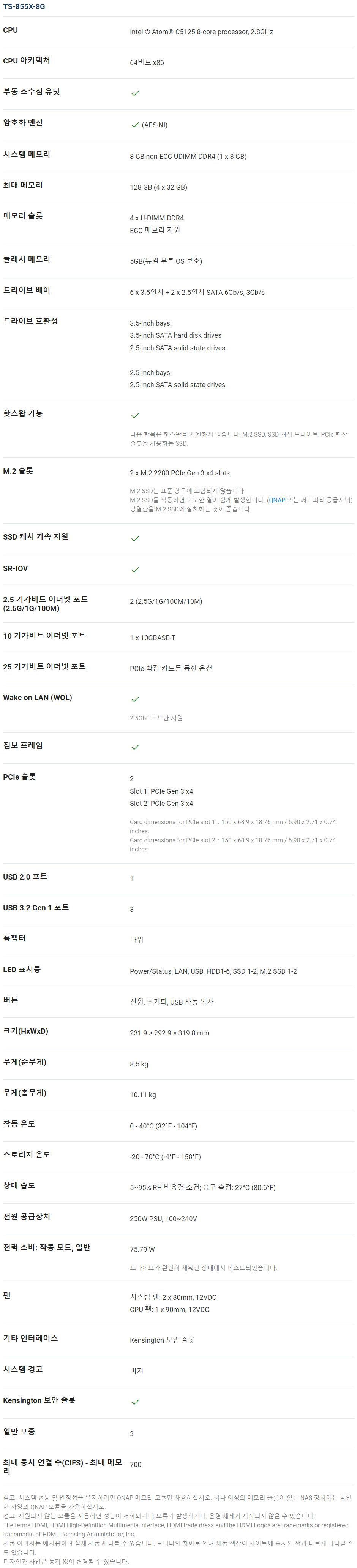 TS-855X 고성능 8코어 10GbE NAS고속 가상 머신 작업을 위한 하이브리드 스토리지 NAS | |||||||||