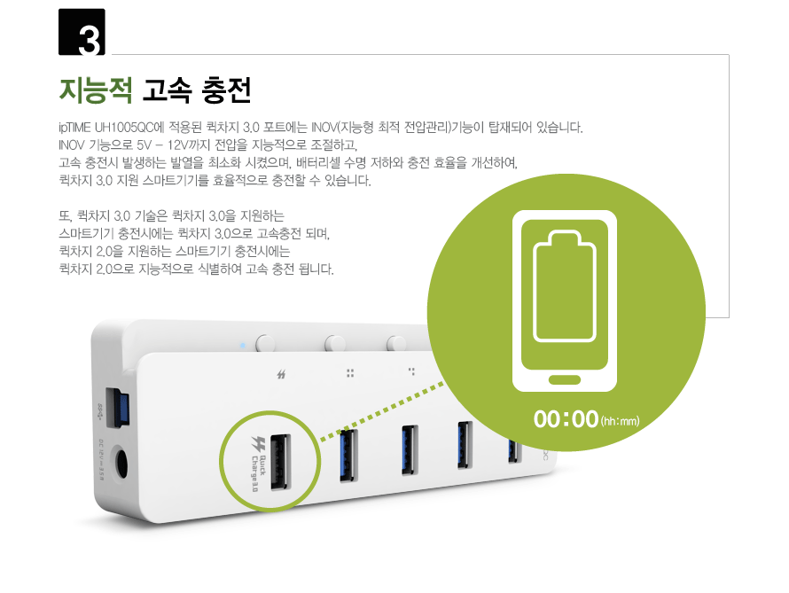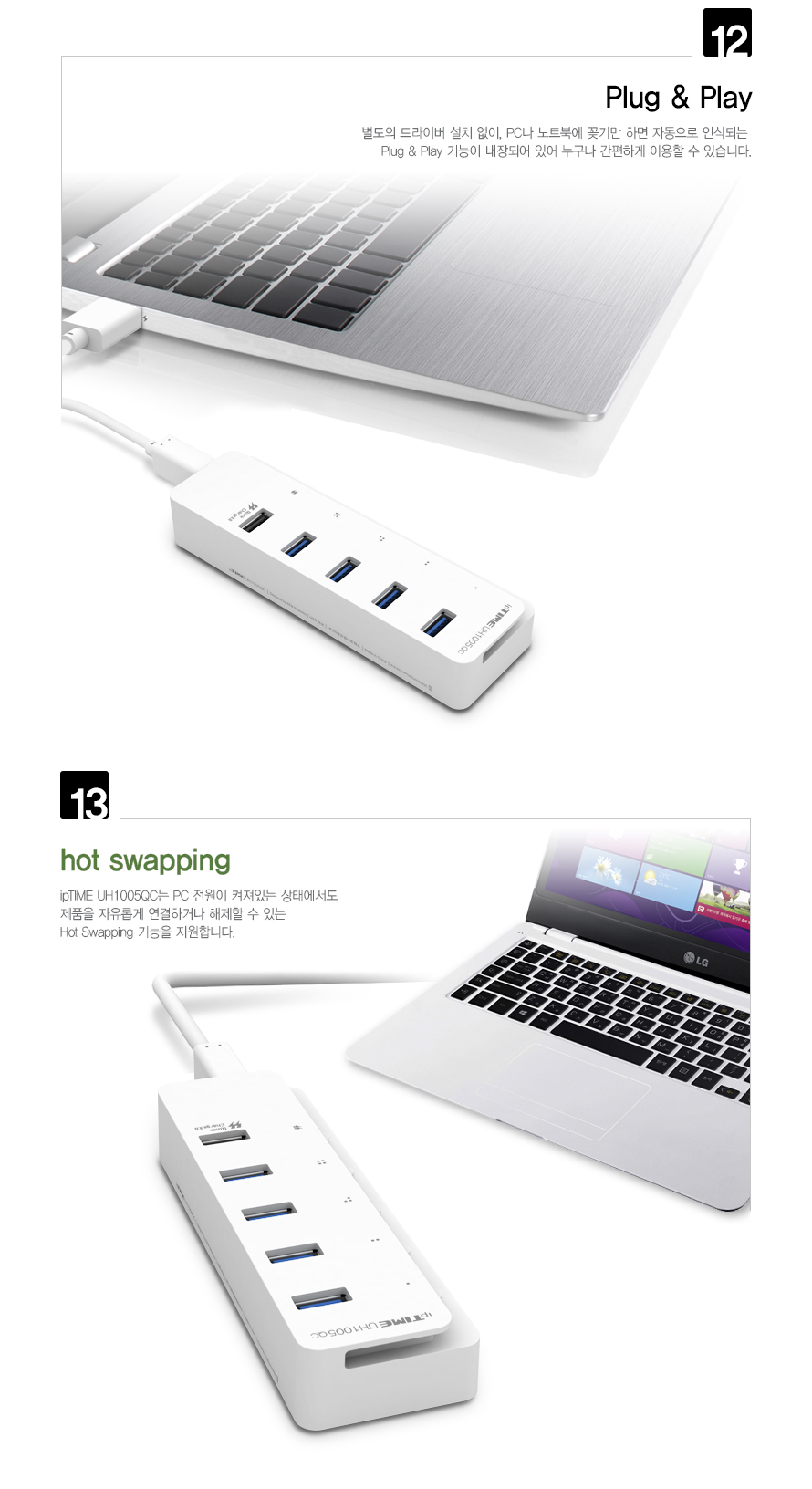 ipTIME UH1005QC는 USB 3.0의 5Gbps 속도보다 2배 이상 빠른 USB 3.2 Gen2를 지원해 최대 10Gbps의 속도로 대용량의 데이터를 보다 빠르게 전송할 수 있습니다.
