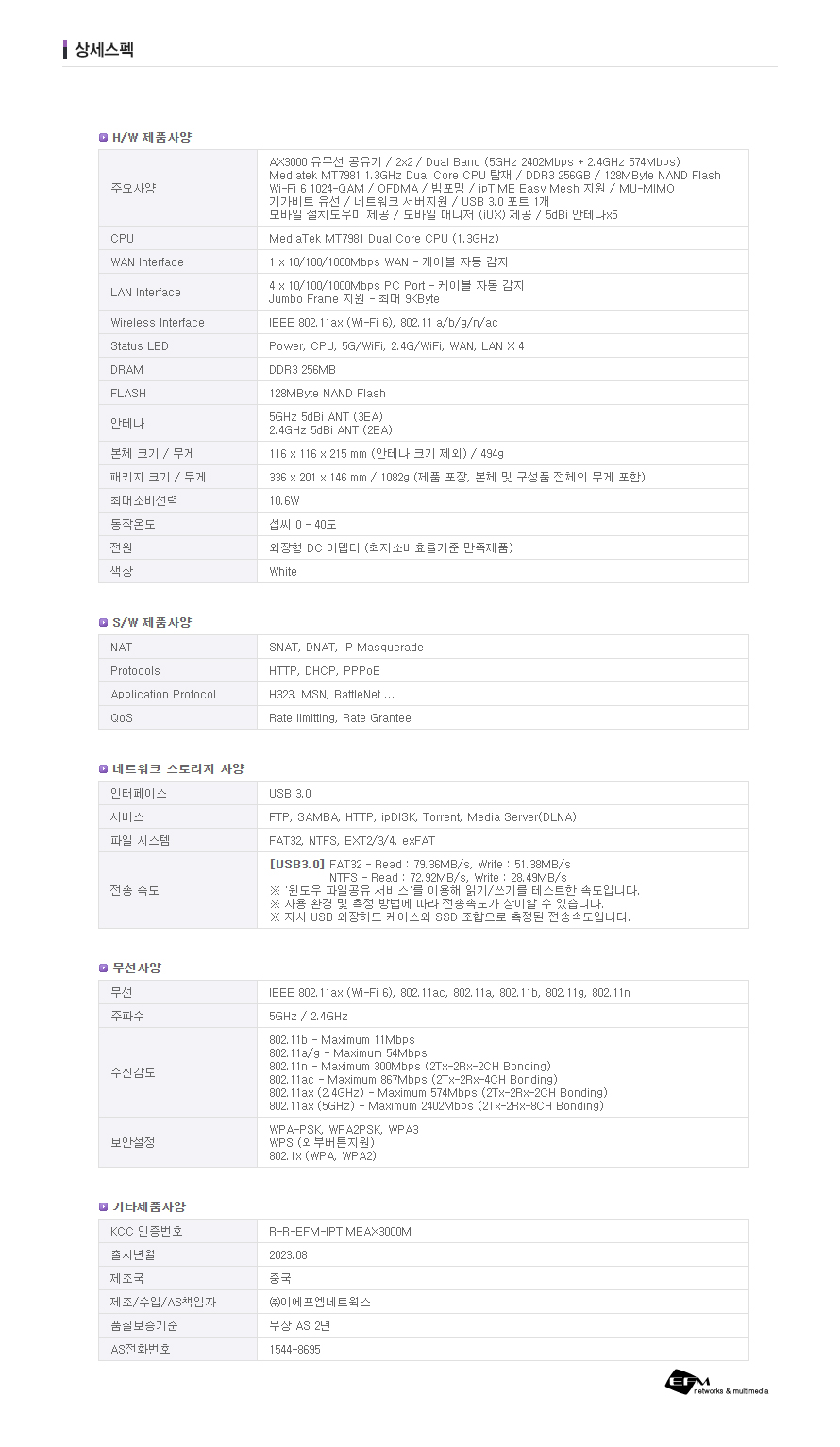 아이피타임 AX3000 메시 Wi-Fi 공유기 AX3000M