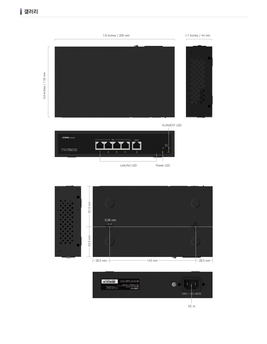 아이피타임 4포트 PoE 허브 PoE401
