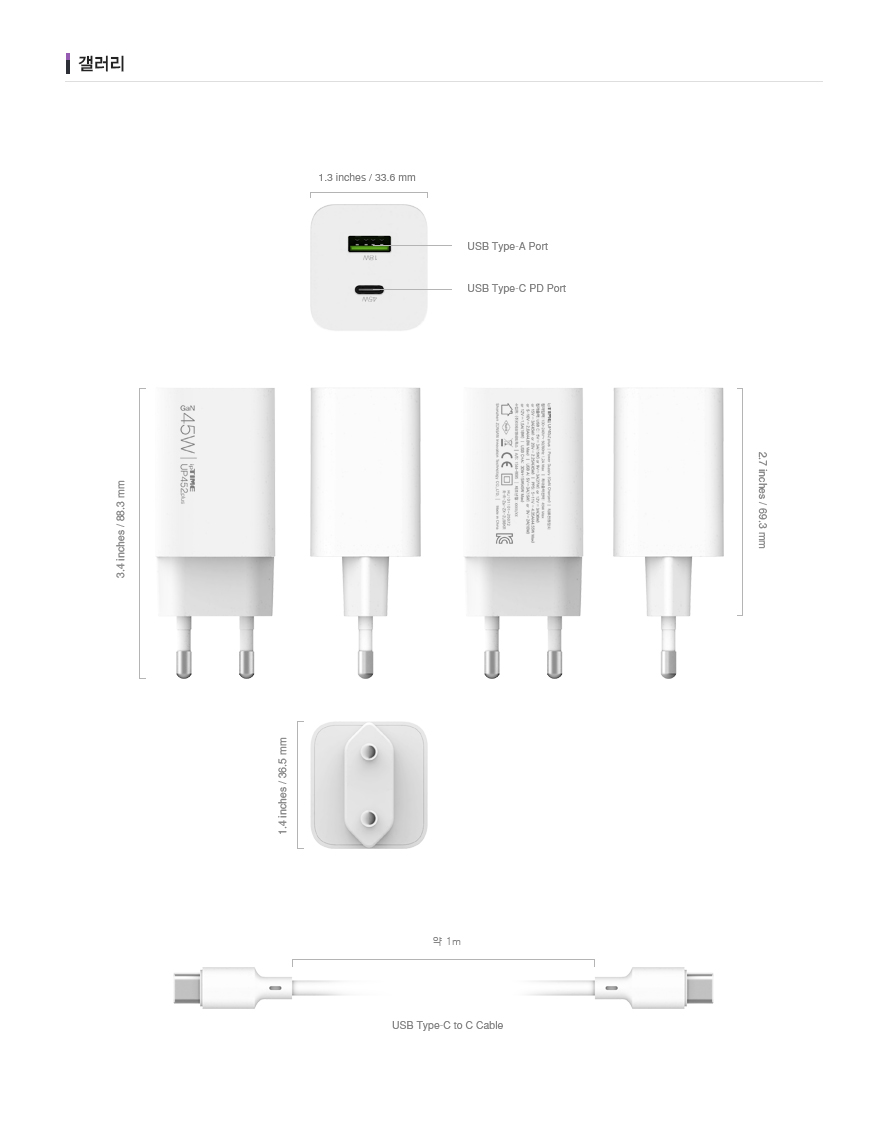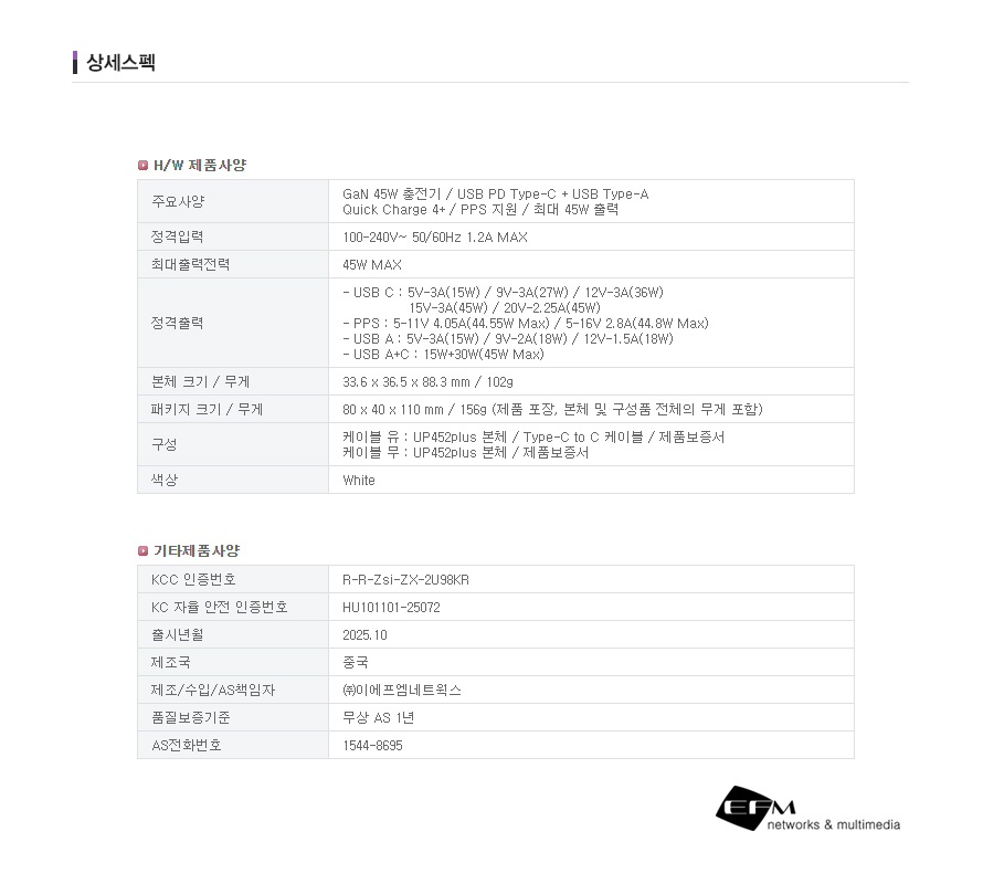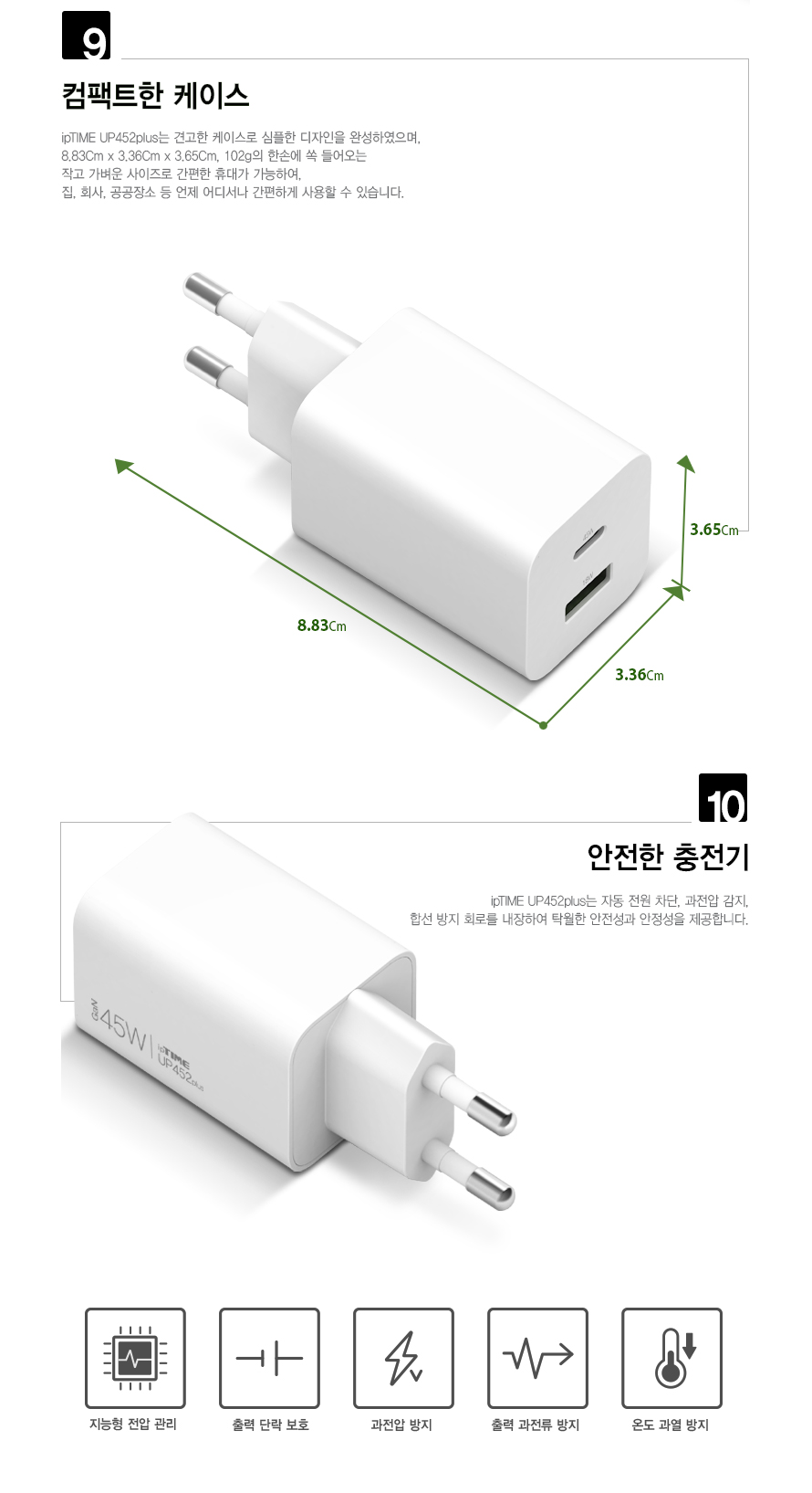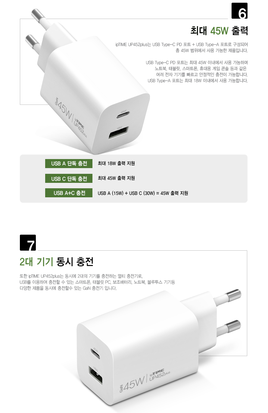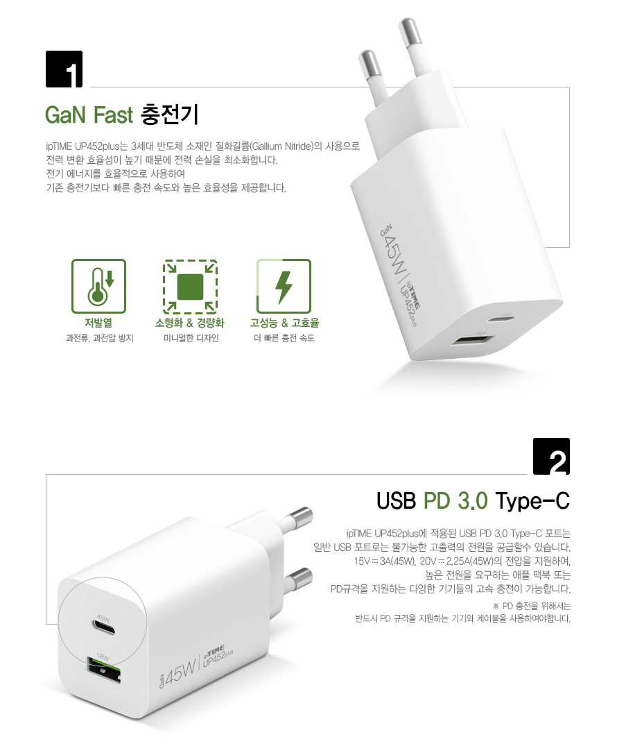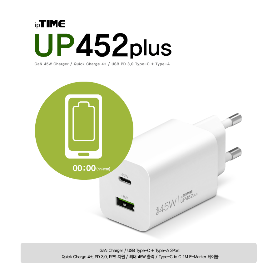 아이피타임 GaN 45W Type-C + Type-A 콤보 PD 충전기 UP452 PLUS